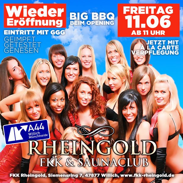 Hallo, am Freitag, 11.06. öffnet FKK-Rheingold Zugang mit GGG Jetzt mit à la Carte Verpflegung Wir nutzen das gute Wetter und veranstalten ein Barbeque im Rheingold: Wir servieren frisch vom Grill: Schweinenackensteak Hähnchen Innenfilet Schweinebauch Grillwurst Thüringer Art Grillwurst Krakauer Art Kartoffelsalat mit Ei klassisch Griechischer Bauernsalat Weißkrautsalat Mediterraner Nudelsalat Folienkartoffel mit Sauerrahm Fladenbrot Frisch geb. Spitzbrötchen Butter & Kräuterbütter, Tzatziki Ketchup, Senf Wir wünschen Guten Appetit! FKK Rheingold, Siemensring 7, 47877 Willich, +49 (0)2154-8168958 www.fkk-rheingold.de
