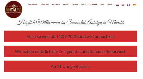 Am Wochenende kam in mir der Wunsch auf, einen mir bisher unbekannten Club kennenzulernen. Dieser sollte in NRW liegen und mit Nackedeis glänzen. Und auch hier konnte das Freiercafe weiterhelfen, denn dem Laufband auf der Startseite war zu entnehmen , dass es in Münster neuerdings zwei FKK-Tage gibt, montags und mittwochs. Also nichts wie hin. Der Club Antalya liegt im Westen von Münster. Der Empfang war sehr freundlich, Bedingung für den Einlass sind auch hier GGG und Kontaktnachverfolgung sowie der günstige Eintrittspreis von 20,- Euro (inklusive Softdrinks, Kaffee und kleinem Buffet). Vom Empfang aus geht es links in den Speiseraum und rechts in die Umkleide, der sich Duschen, Toiletten und der Wellness-Bereich anschliessen. Weiterhin gibt es einen Barraum, wo sich die meisten Mädels aufhalten, und ein Aussengelände, das sowohl von männlichen wie auch von weiblichen Gästen besucht wurde. Das Erotikkino befindet sich in der ersten Etage, merkwürdigerweise guckte hier nie mal ein Mädel vorbei. Anwesend waren 10 Nackedeis, davon leider Acht überhaupt nicht nach meinem Geschmack. Ein anderer Gast empfahl mir Denisa und Sofia, aber das passte optisch einfach nicht. Da Sahras Service laut Setcard nur eingeschränkt ist und Evelyn trotz Ankündigung leider doch nicht anwesend war, konzentrierte ich mich dann ganz auf Renata. Renata kommt aus Rumänien und war sowohl im Barraum wie auch im Aussengelände sehr zeigefreudig. Zweimal habe ich sie mit einem Gast im Whirlpool gesehen, für den wohl dieselben günstigen Preise gelten wie für einen Zimmerbesuch (30 Euro 20 Min, 40430, 70460). Das Gespräch war okay, ein Mix aus Deutsch und Englisch. Dabei musste ich leider feststellen, dass ihre Setcard überhaupt nicht stimmte. Nichts mit ZK, nichts mit EL, nichts mit DT, anderes wie z.B. Muschifingern wurden gar nicht erst erwähnt. Übrig geblieben sind dann nur noch FM, GV und Lecken mit Einschränkungen (mit Küssen sind Körperküsse gemeint). Somit verzichtete ich auf den geplanten Zimmerbesuch mit Renata. Saunagirls Münster | Sauna-Girls Beim Verabschieden habe ich auf die Diskrepanz zwischen Setcard und Realität hingewiesen. Und jetzt muss ich den Club ausdrücklich loben: Renatas Setcard wurde angepasst. Das trägt auf jeden Fall zur Glaubwürdigkeit des Clubs bei, so dass ich mir eine Wiederholung mit einer veränderten Mädel-Crew durchaus vorstellen kann.