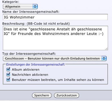 Bei der IG Wohnzimmer handelt es sich um eine geschlossene IG. Diesen Status hat die IG beim Erstellen bekommen. Du musst dem IG Leiter eine PN schicken, dann lädt er Dich ein . Keine Sorge....hier kommt nichts weg