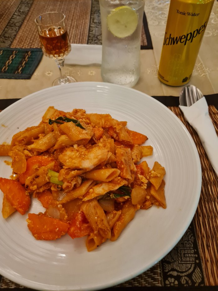 Mein Lieblingnsessen in Pattaya, Braumeister mit sehr viel cheese. Und für den kleinen hunger schon mal diese drei hänchen Schnitzel.