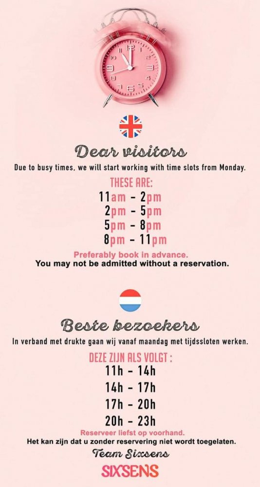 Garantiert sind ab Morgen 15 Frauen anwesend, sie sollen dem ganzem Tag arbeiten dürfen also kein Frauen-Schichtwechsel oder so...Angeblich versucht Sixsens bei die Behörden Erlaubnis zu bekommen für 30 Frauen (weil sie die Club schon vor einige Monaten "Verteilt" haben in 2 (oder mehr) Teilen mit Türen usw...Fraghaft ob das erlaubt wird ab Morgen aber irgendwie das Ziel es bald zu ermöglichen 30 Frauen am Start zu haben...An sich wäre das teilweise un-vorteilhaft weil sie weniger wie 30 Zimmer haben und davon ist ein wesentliche Anteil Zimmer NICHT ausgestattet mit Fenster oder irgendwelche Möglichkeit sie ordentlich zu verluften. Es wäre also komplett logisch aus Pandemie-Perspektiv die Anzahl Frauen zu begrenzen auf 15, und ergo die Benutzung von dafür besser kwalifizierte Zimmer damit zu ermöglichen!