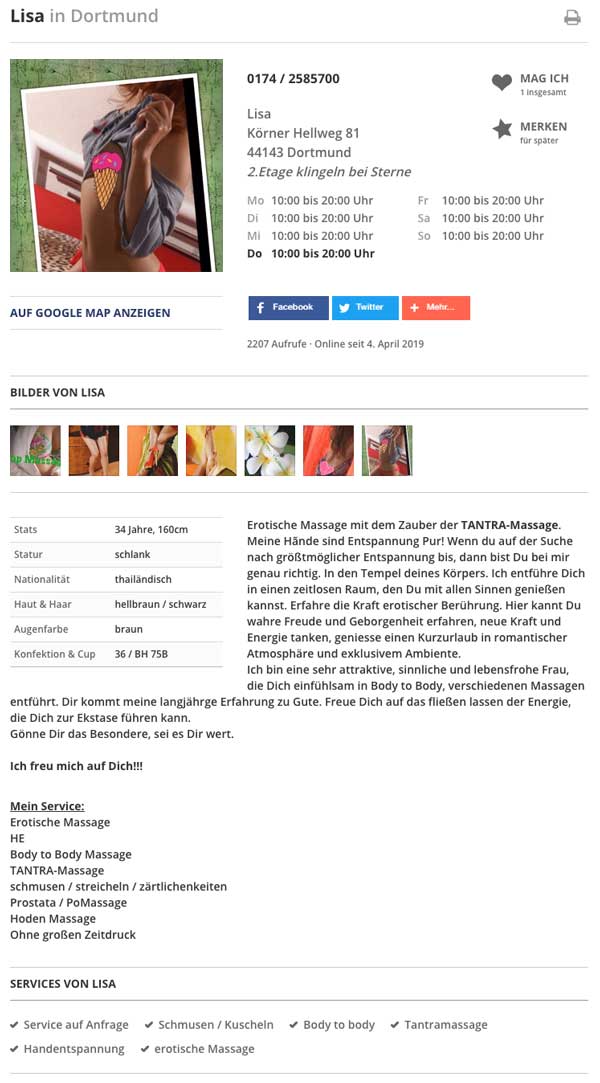 Kontakt Lisa Körner Hellweg 81 44143 Dortmund 2.Etage klingeln bei Sterne Tel 0174 / 2585700 Sexkontakt Lisa in 44143 Dortmund auf IntimesRevier.com