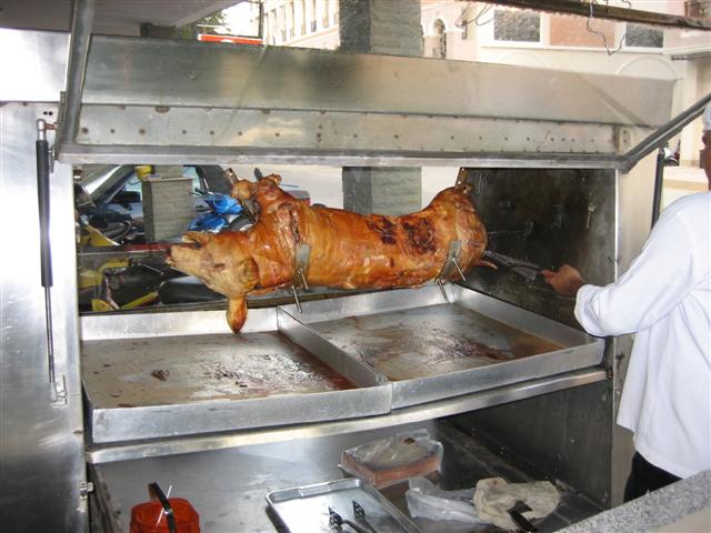 Der Abend begann mit der angekündigten Grillparty im König. Auch einige Nicht-Hotelgäste waren erschienen. Die Sau kam pünktlich um 18:00 Uhr auf den Grill.