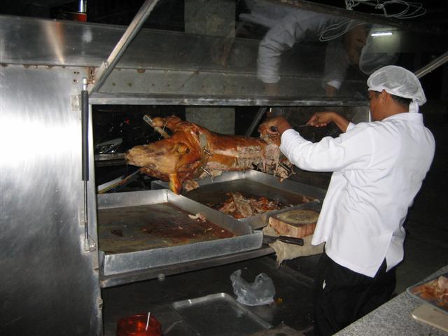 Als die Sau dann endlich fertig war, wurde zusätzlich noch ein super Buffet, bestehend aus Thai- und europäischen Speisen aufgetischt.
