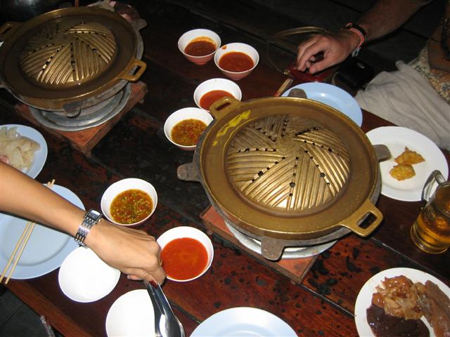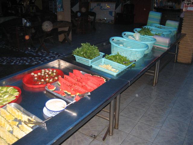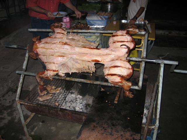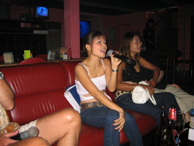 09.05.2007 Kumpel: Da ich gesundheitlich immer noch sehr angeschlagen bin, haben wir gestern mal einen ruhigen Abend jenseits der Barszene eingelegt. Um 19:30 hatten wir uns mit MAXWELL und Phoo am Delphinkreisel verabredet. Von dort aus sind wir zu einem typischen Thai-Barbecue in der 3rd Road gefahren.....sehr empfehlenswert!!! Hier gibt es alles, was sich nur irgendwie grillen lässt! Hühnchen, Leber, Rinder- und Schweinefleisch und natürlich Seafood in allen Varianten! Auch ein separates Desertbuffet ist vorhanden! Man holt sich das, was man essen möchte, im rohen Zustand am Buffet und gegrillt wird direkt auf dem Tisch. Hierfür erhält man vom Staff kugelähnliche Grillgeräte mit einem ausgeprägten Rand, in dem sich auch eine Suppe anrichten lässt. Alles in allem kostet dieses Barbecue p.P. 119 TB! Ein super Preis-Leistungsverhältnis, wie ich finde!!! Sieht zwar alles nicht so wirklich lecker aus, aber lasst euch gesagt sein, dass es wirklich super geschmeckt hat!!! Wirklich eine schöne Variante, um mal auf andere Art und Weise in den Abend zu starten! In diesem Restaurant waren wir übrigens die einzigen Farangs. So 'anders' wie der Abend begonnen hatte, sollte er auch weitergehen. Nach dem Essen kam M.... auf die grandiose Idee, in eine Karaokebar, irgendwo im Niemandsland, zu fahren. Von außen war es ein recht unscheinbarer Schuppen, aber innen fanden wir eine Topausstattung vor! Wir haben uns erst mal niedergelassen und einige kühle Drinks geordert. Die Songmappe wurde dann auch sogleich mitgeliefert. Kein Mensch kann sich vorstellen, welch eine Freude man einer Thailady mit einem Karaokeabend machen kann!! Die Mädels haben Songs ausgesucht was das Zeug hält und recht bald landeten dann auch die Mikros zum ersten Mal auf unserem Tisch... Auch M...ist ein wirklich begnadeter Sänger!!! Hier trällert er gerade den "Itsy-beenie-Honolulu-Strandbikini Auch der MS2101 wuchs mit "An der Nordseeküste..." schier über sich hinaus Bei den Frauen standen dann eher die typischen Thaischnulzen im Vordergrund. Alles in allem und in Anbetracht meiner körperlichen Verfassung war's ein extrem witziger Abend!!! So Jungs, dies ist definitiv meine letzte Berichterstattung aus Pattaya! Werde jetzt gleich schon mal meinen Koffer packen. Eddy hat heute abend mal wieder ein Barbecue mit gegrillter Sau organisiert und morgen abend um 18:00 Uhr kommt unser Taxi nach Bangkok. Einige Sachen werdet ihr hier noch lesen und etliche Fotos wird es auch noch geben. All dies allerdings erst nach unserer Rückkehr nach Deutschland. So long alles Gute