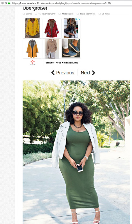 Nebenbei scheint sie als XXL-Model aktiv zu sein . Über die normale Navigation finde ich die Dame im zweiten der verlinkten "Portale" übrigens nicht, dafür allerdings eine Menge strammer Bubis für die Spuk-Galerie. Ob da alles mit rechten Dingen zugeht? Darf man anzweifeln. Coole Looks und Stylingtipps für Damen in Übergröße! - Mode Frauen